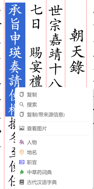 点击右侧按钮可以进行复制、搜索、带来源信息复制等功能。
